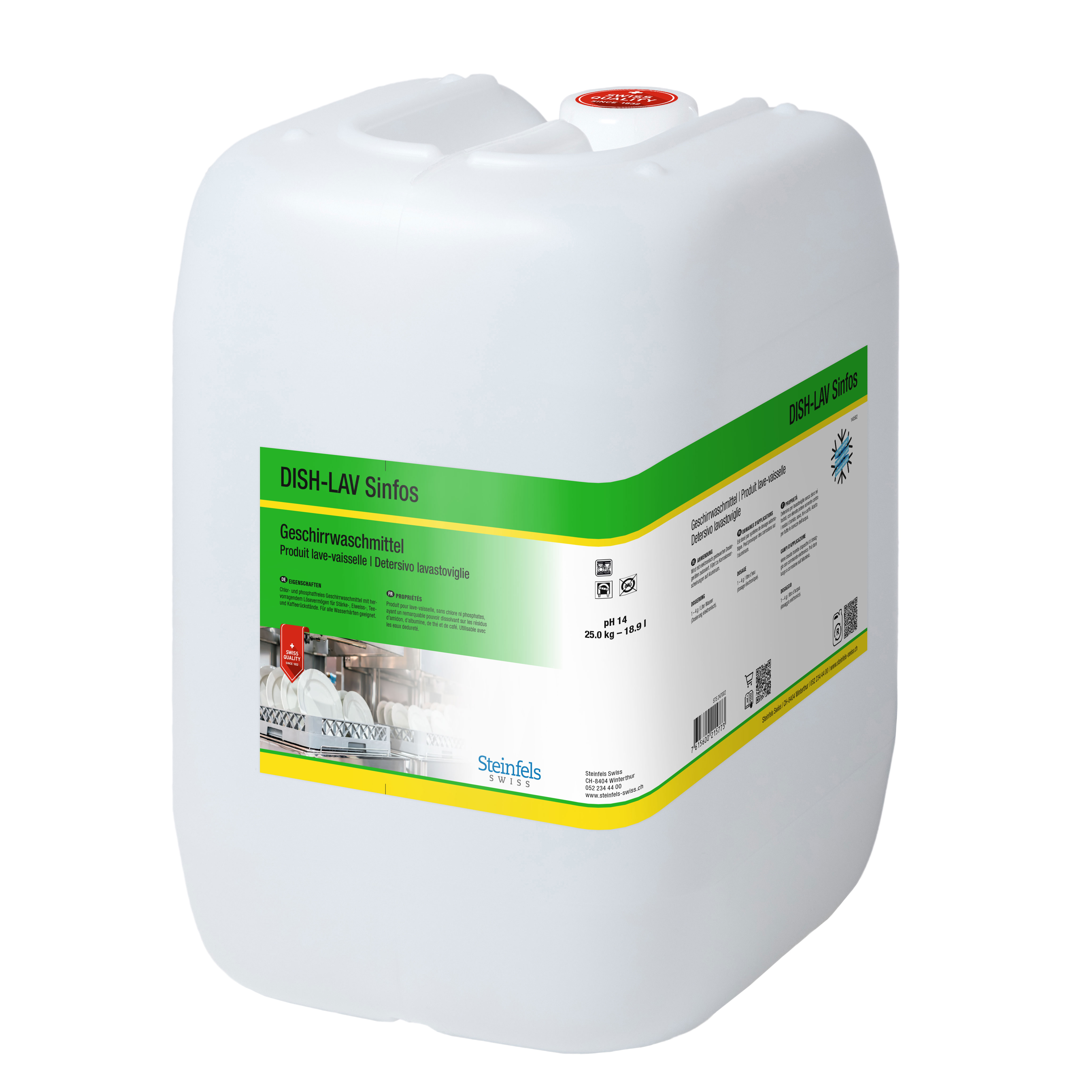 Chlor- und phosphatfreies Universal-Geschirrwaschmittelkonzentrat für alle Wasserhärten